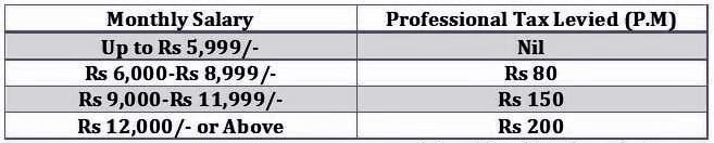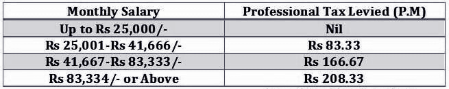 Professional Tax slab rate – Goa